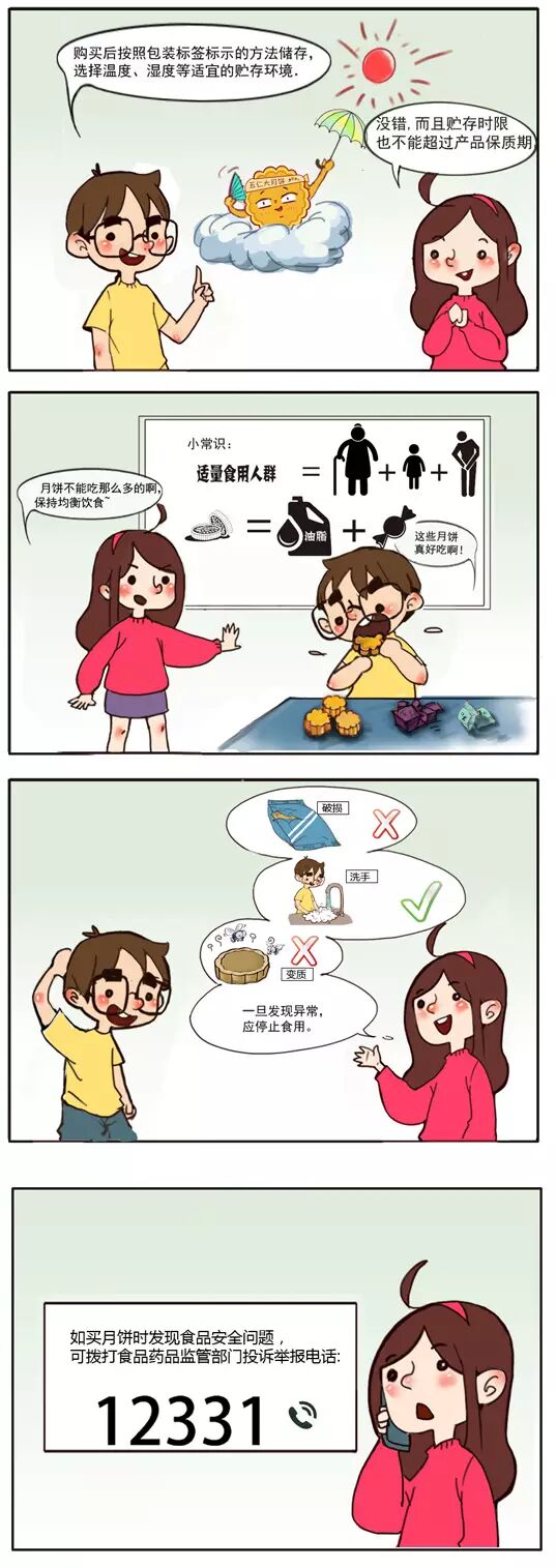 三、食用月饼前要保持个人卫生, 并注意洗净双手。月饼应在保质期内食用,食用前应注意观察月饼外观是否正常,有无异味、霉变等现象,一旦发现异常,应停止食用。
